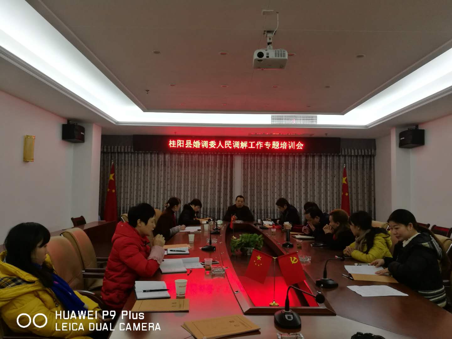 2017年12月15日下午,桂阳县妇女儿童维权中心,桂阳县婚姻家庭纠纷调解中心全体工作人员齐聚志浩律师事务所会议室就婚姻家庭纠纷调解业务进行了集中培训。业务培训由县司法局宣传股股长张晓东授课。随后,全体工作人员就中心一年的工作进行了总结回顾。周晖副县长亲自莅临会场,并就中心2017年工作进行了高度评价,同时还就新的一年中心工作需要新思路,新思维提出了更高要求。参加会议的领导还有县司法局谭家南副局长,县妇联周主席,蒋主席。
