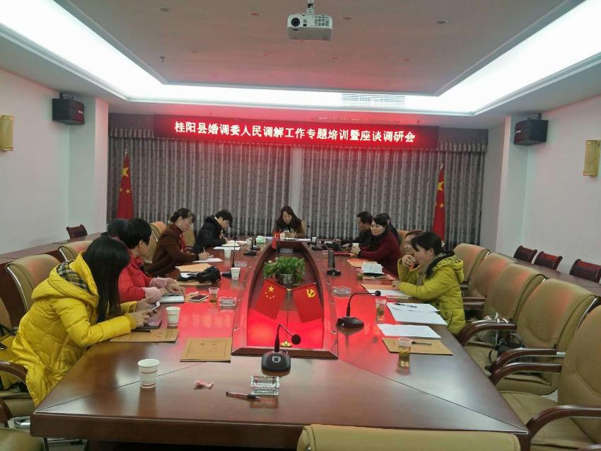 2017年12月15日下午,桂阳县妇女儿童维权中心,桂阳县婚姻家庭纠纷调解中心全体工作人员齐聚志浩律师事务所会议室就婚姻家庭纠纷调解业务进行了集中培训。业务培训由县司法局宣传股股长张晓东授课。随后,全体工作人员就中心一年的工作进行了总结回顾。周晖副县长亲自莅临会场,并就中心2017年工作进行了高度评价,同时还就新的一年中心工作需要新思路,新思维提出了更高要求。参加会议的领导还有县司法局谭家南副局长,县妇联周主席,蒋主席。